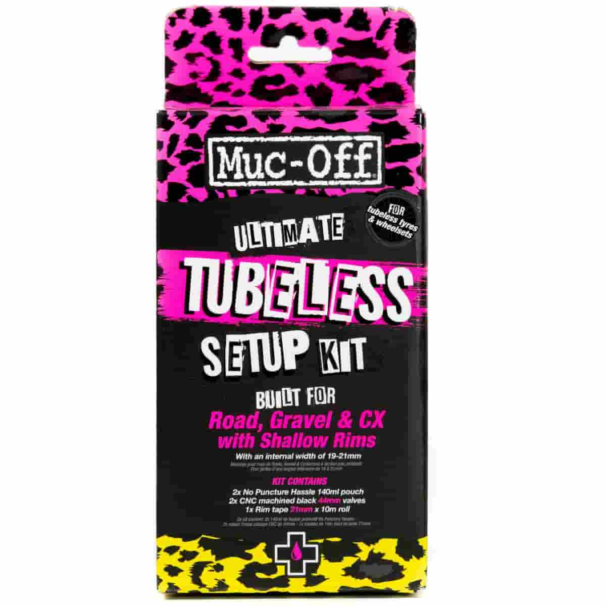he Muc-Off Ultimate Tubeless Set Up Kit is the complete solution for converting your tubeless-ready wheels for a puncture-resistant ride. Ideal for road, gravel, and CX bikes with deep rims, this kit ensures a secure and airtight seal with premium components. Everything you need for hassle-free setup and reliable performance is included.